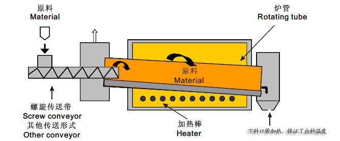 熱循環(huán)采用外部熱循環(huán),高溫區(qū)熱空氣導(dǎo)至出料口產(chǎn)生循環(huán),節(jié)能30%